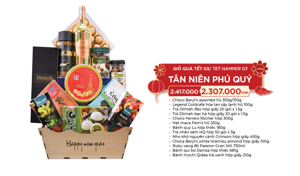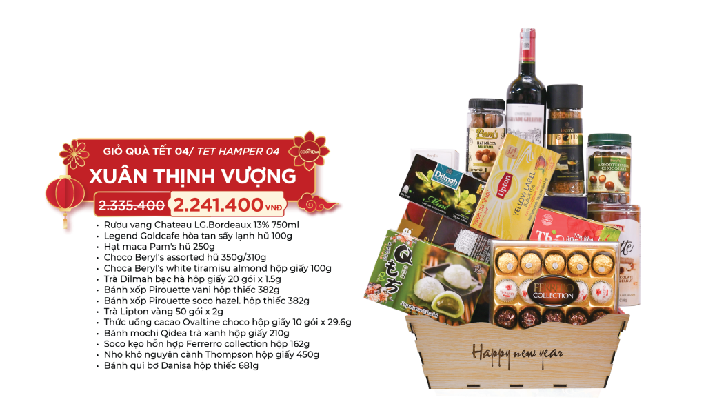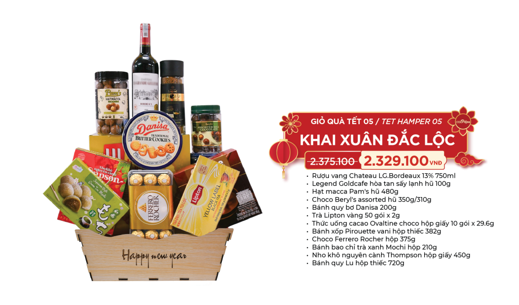 🌍 Giỏ quà Tết Quốc tế với sản phẩm nhập khẩu chính hãng, tuyển chọn từ các thương hiệu uy tín – tinh tế, sang trọng, chuẩn gu biếu tặng hiện đại: