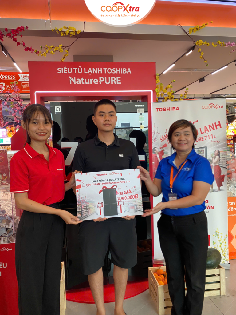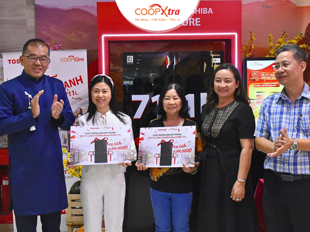 Co.opXtra xin chúc mừng 02 khách hàng may mắn đã trúng Siêu Tủ Lạnh Toshiba NaturePure 711L trong chương trình